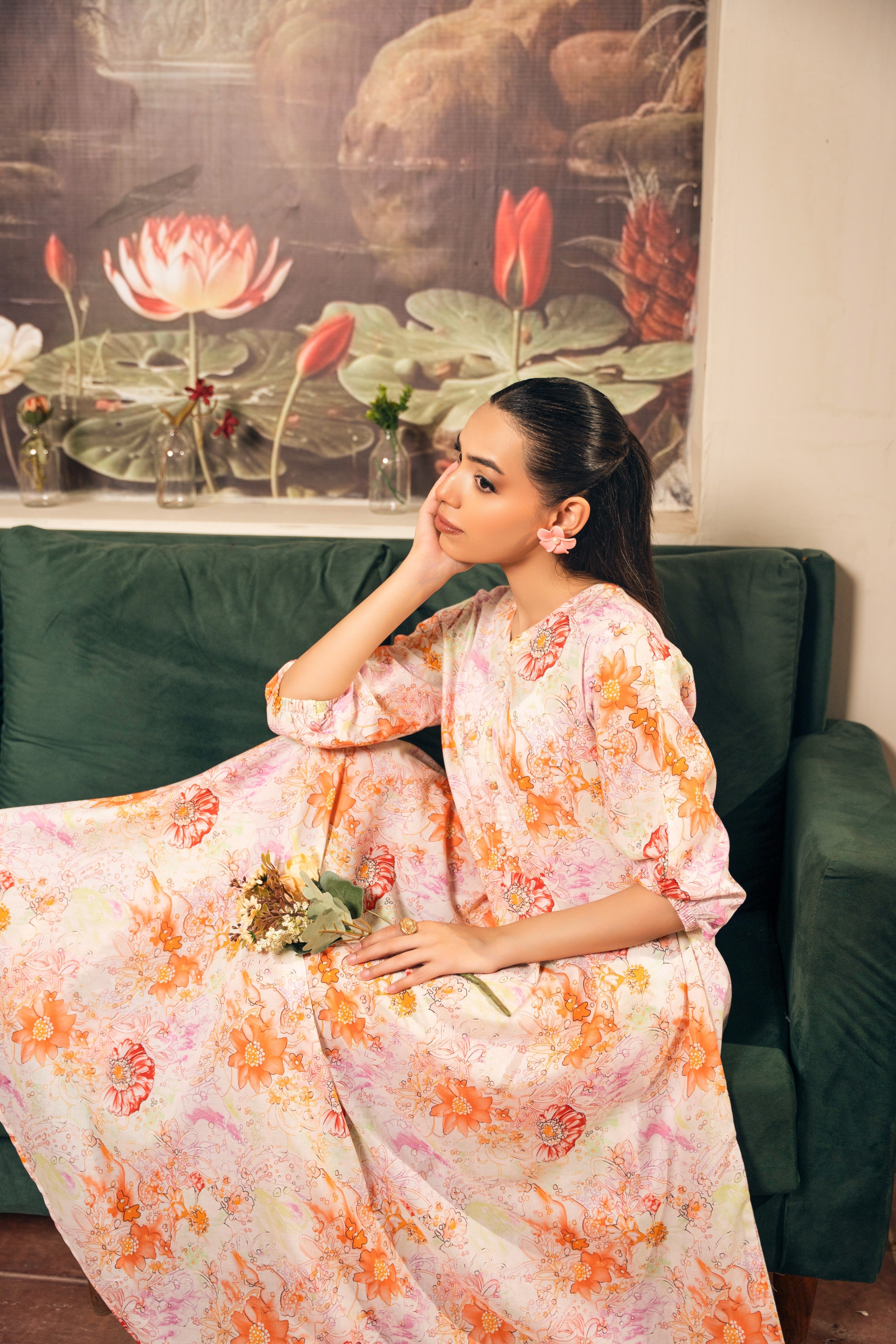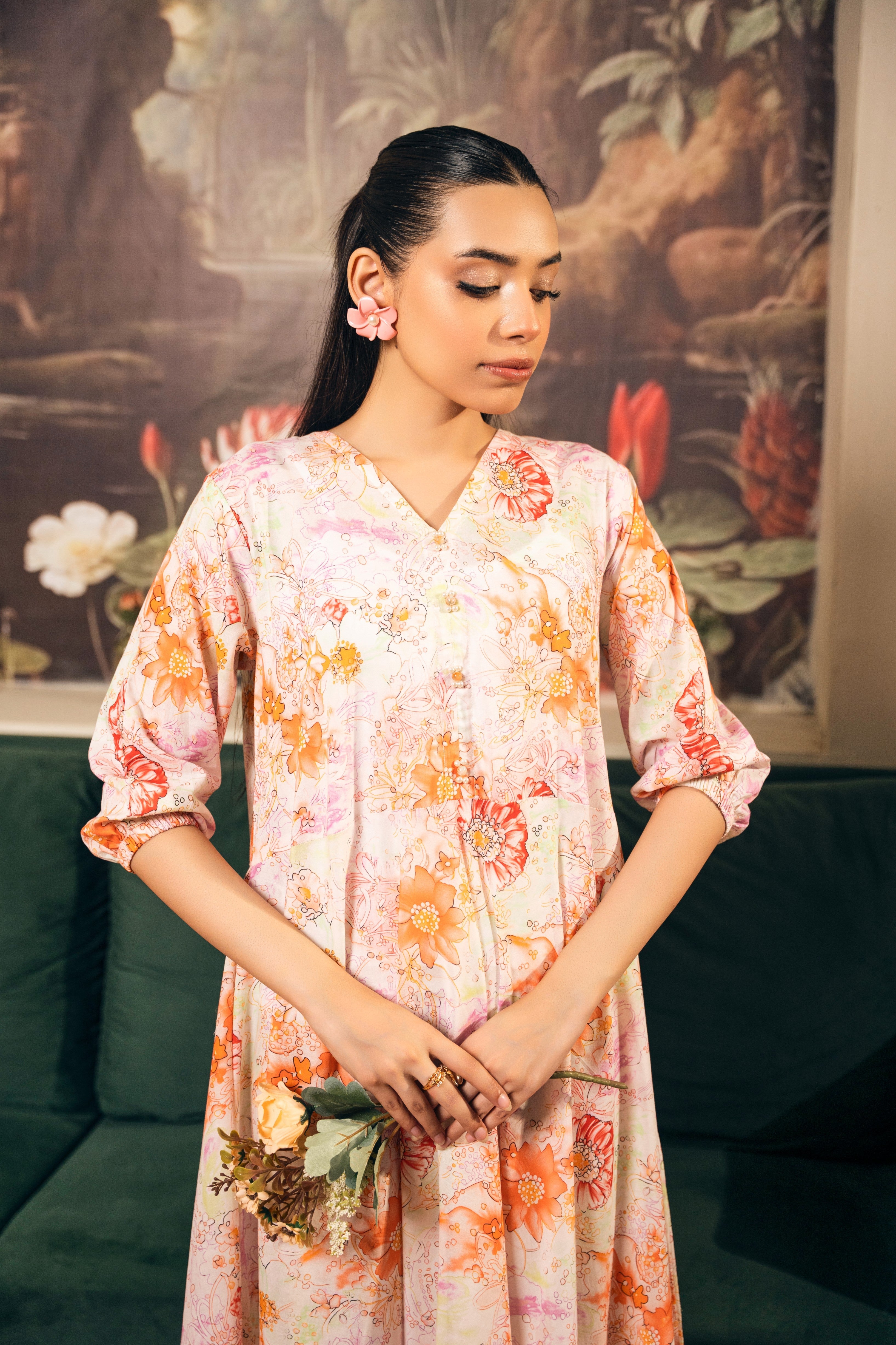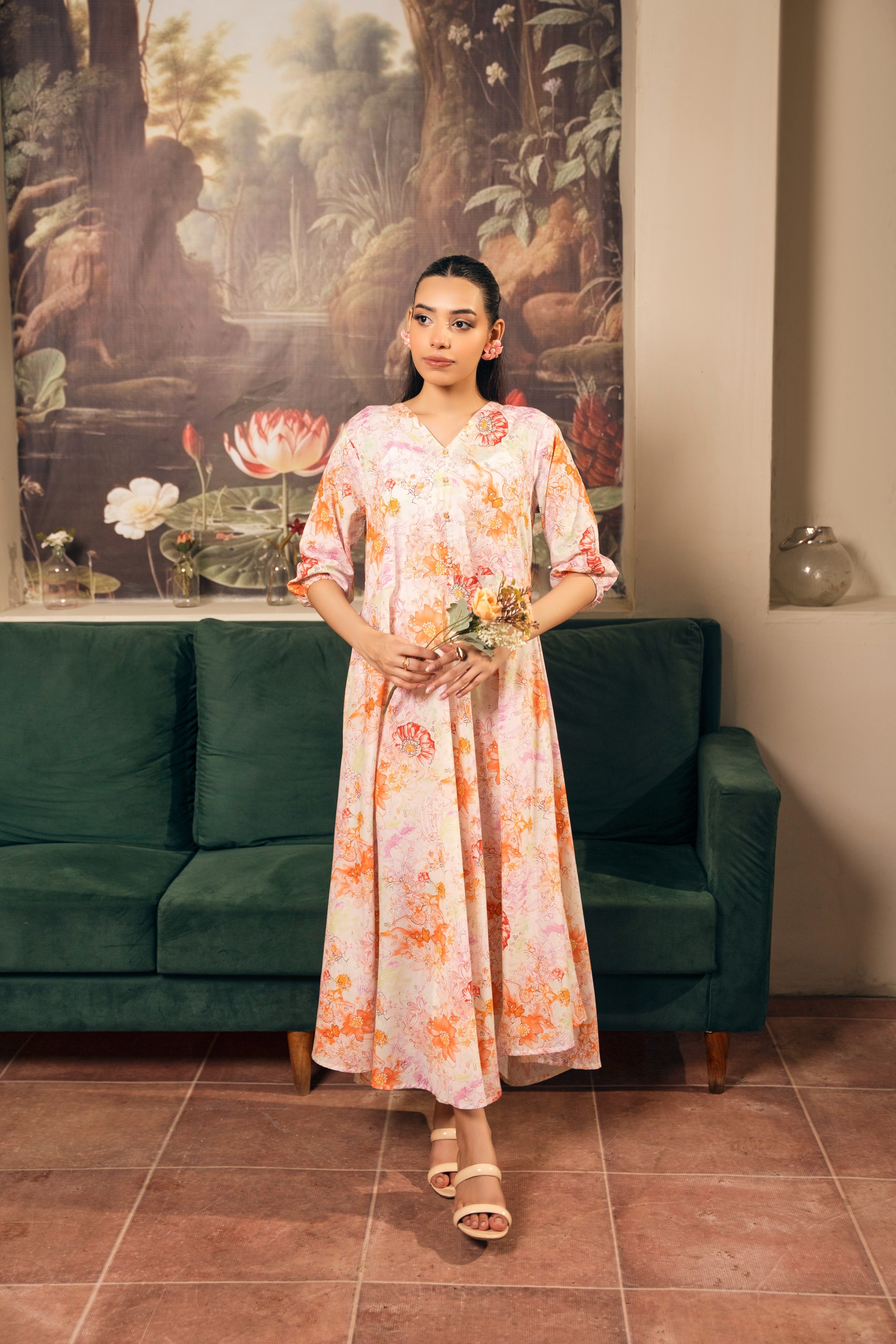 Set Includes: Pearlwork on neckline Anarkali Frock
