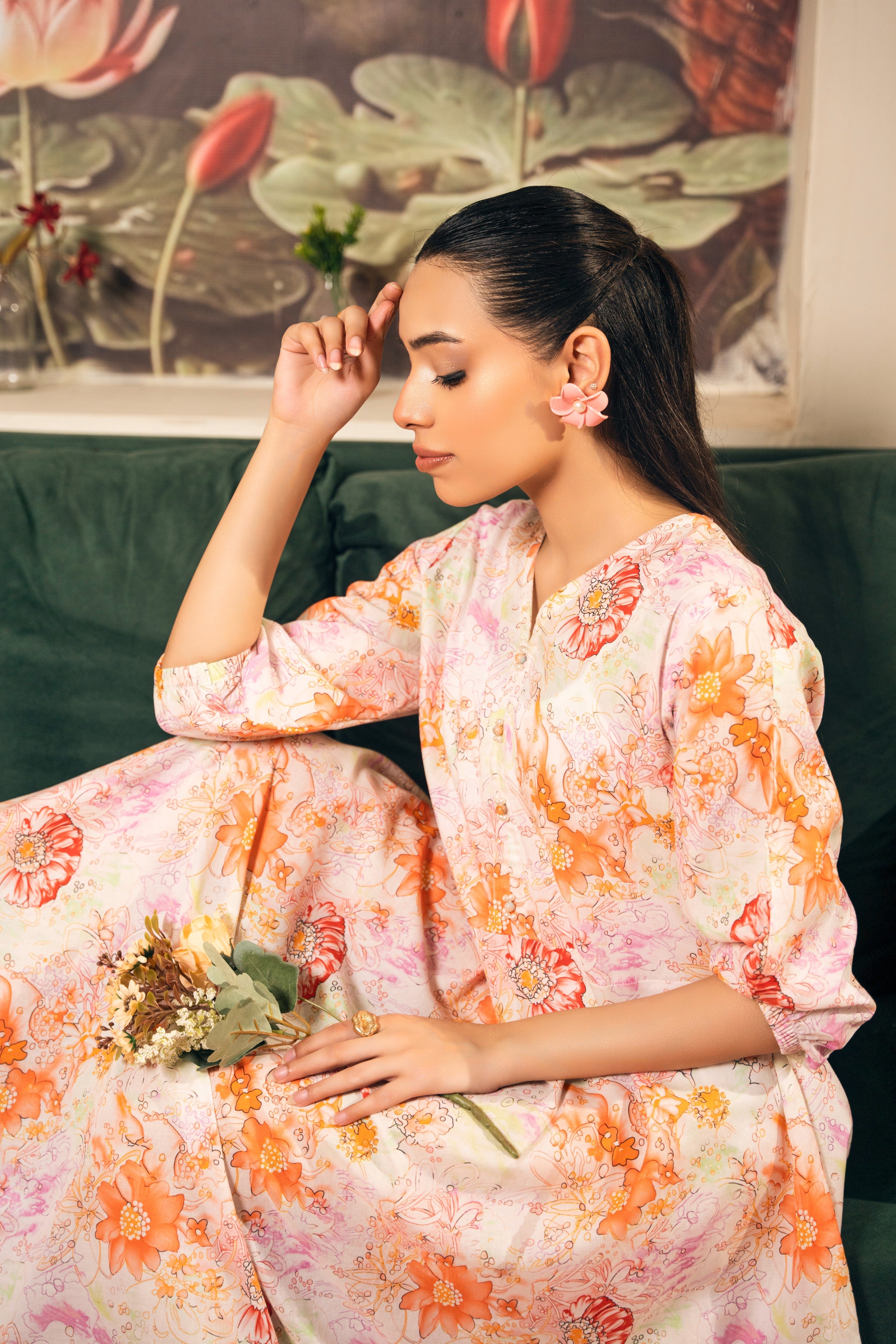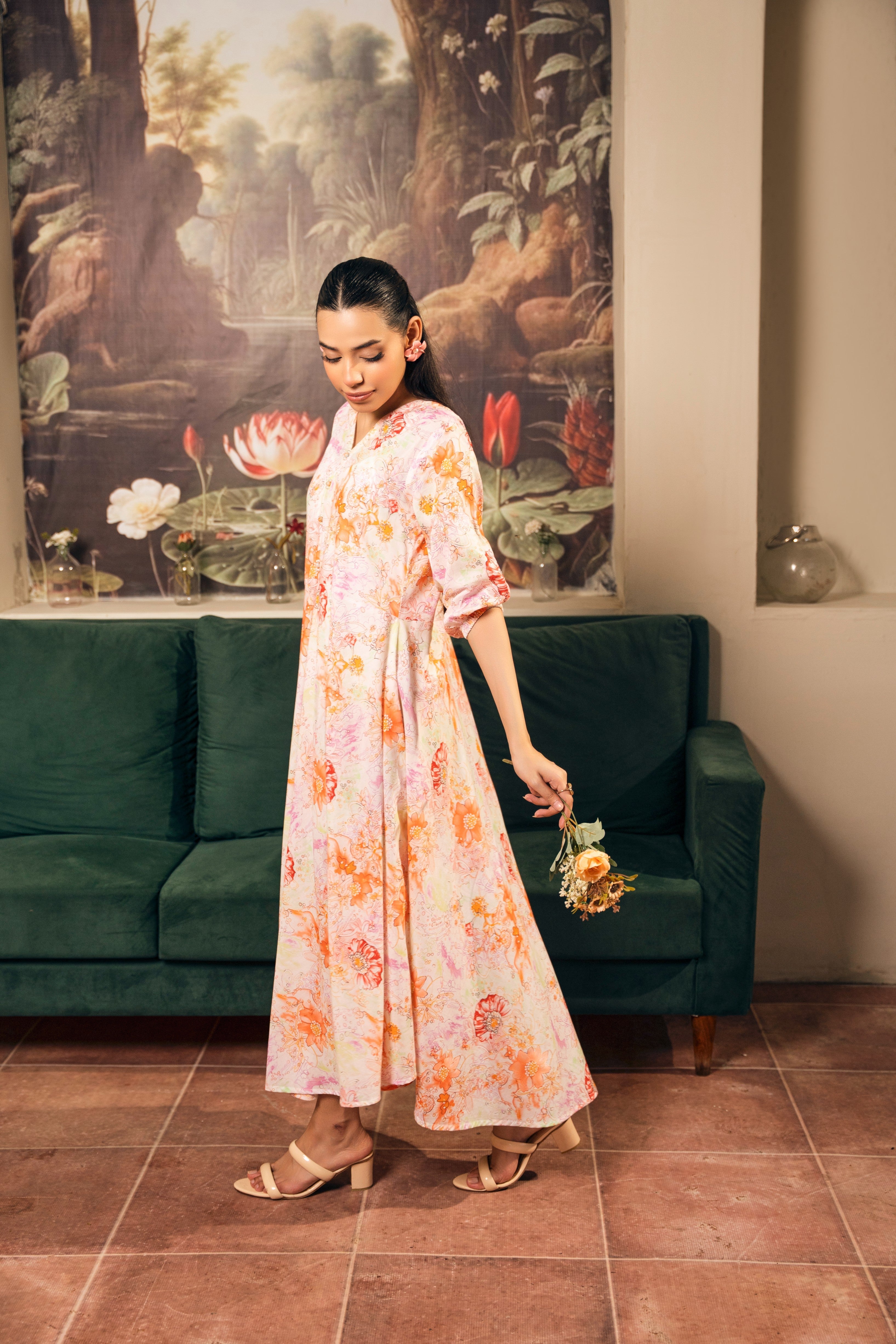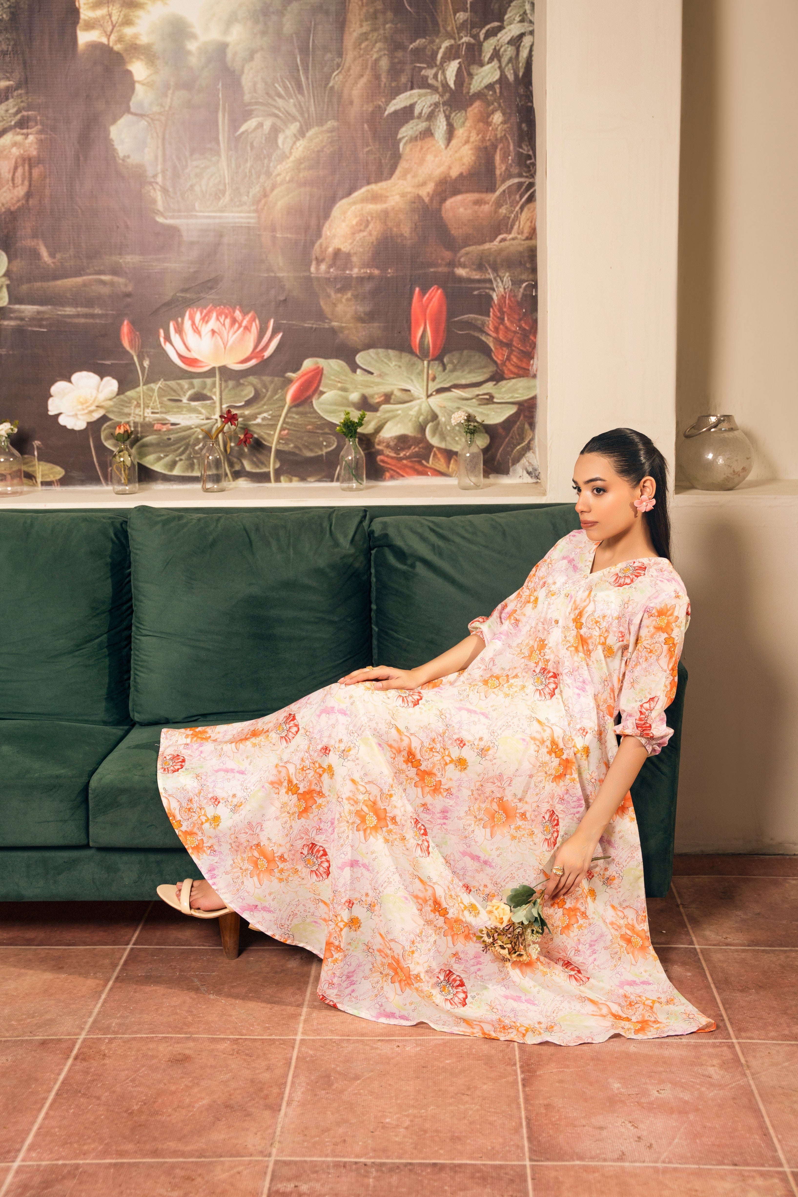 Set Includes: Pearlwork on neckline Anarkali Frock